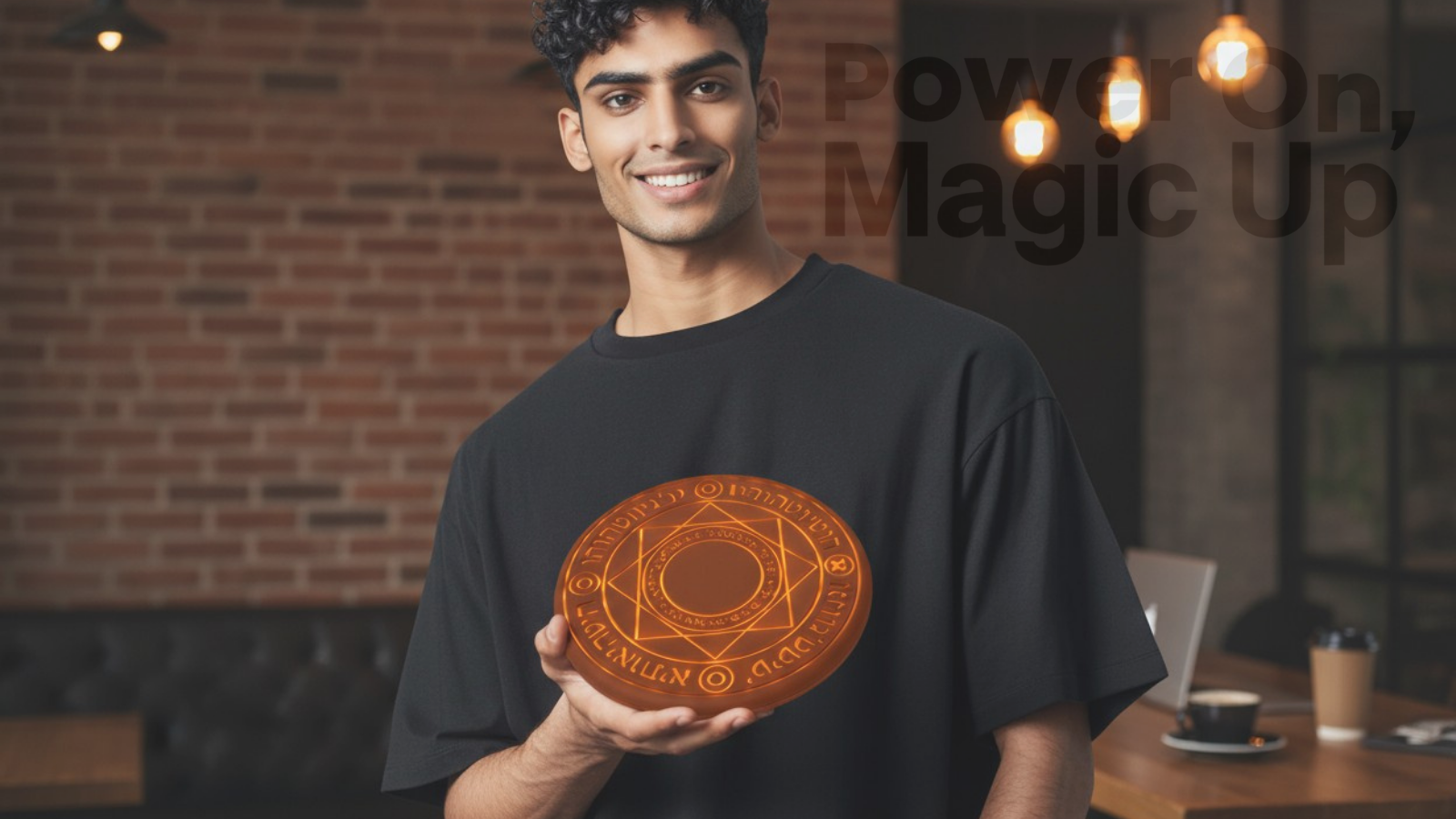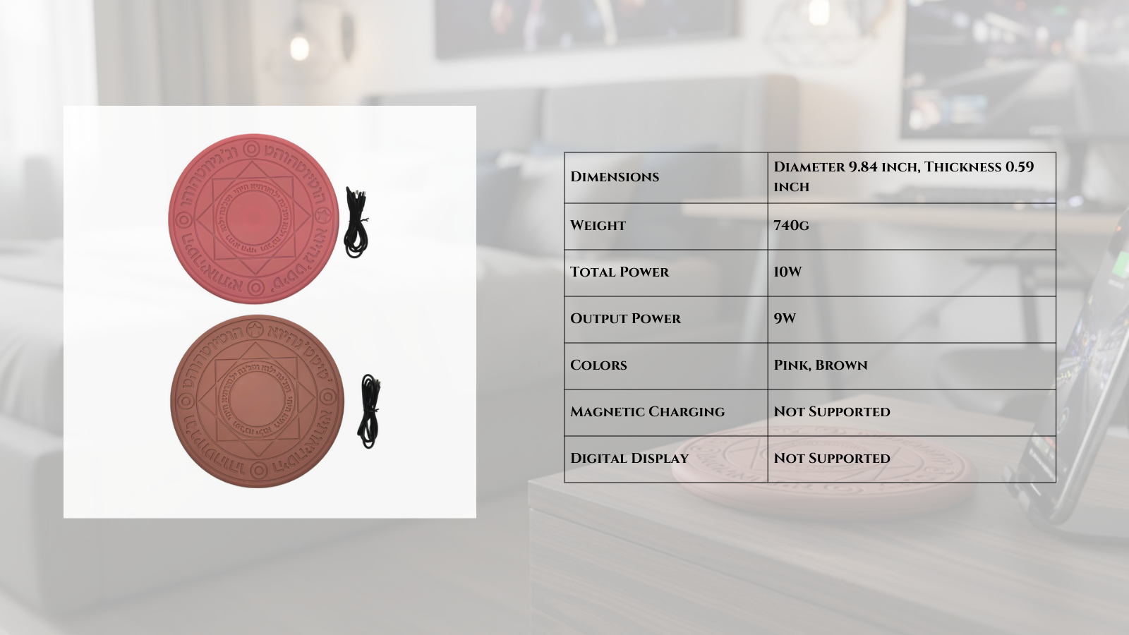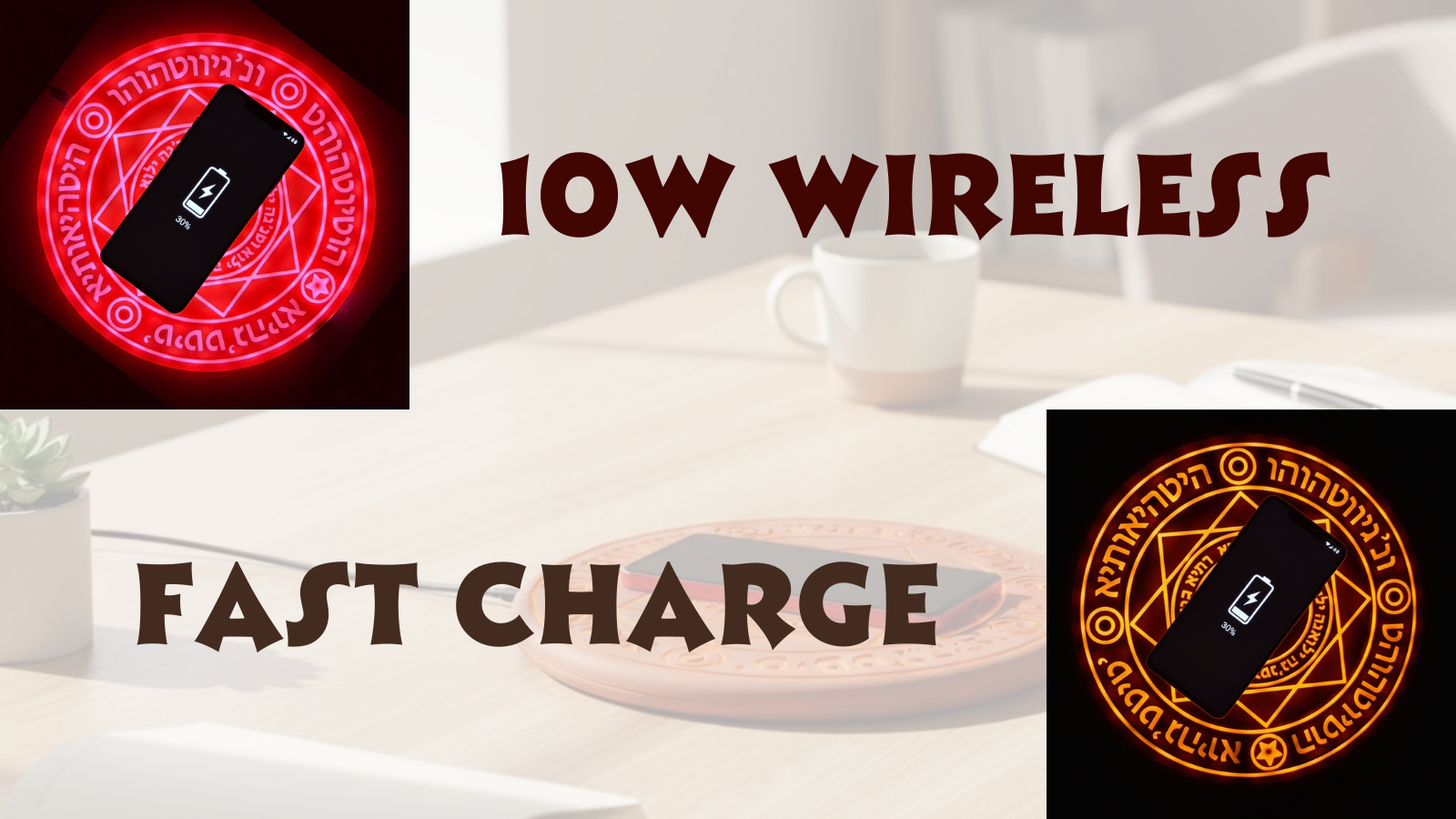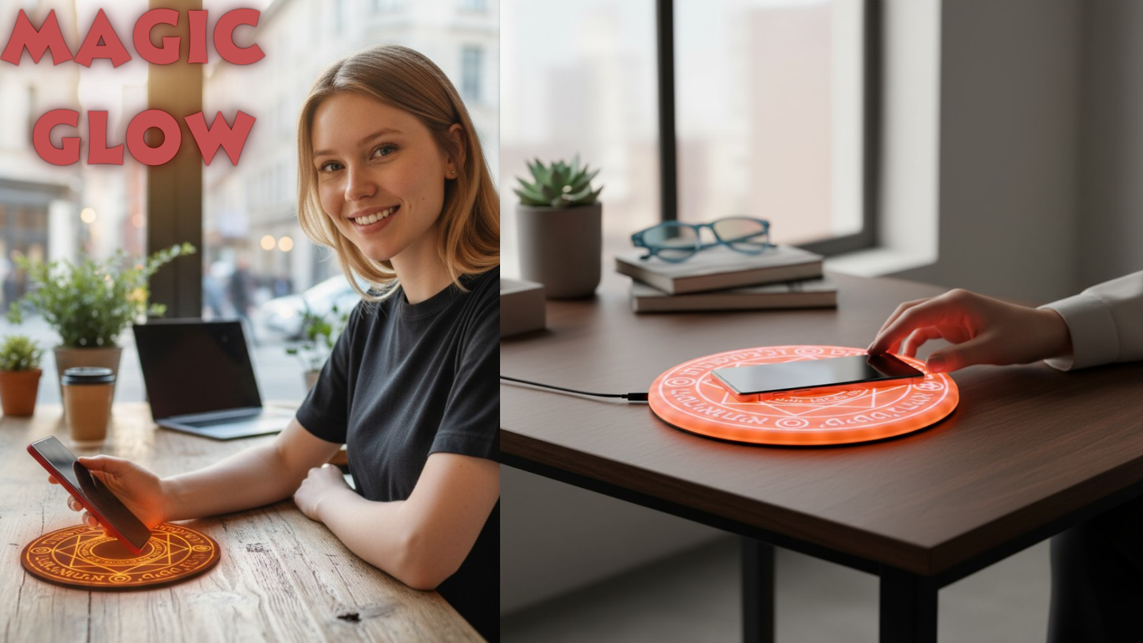 Charge in style. This 25 cm wireless charger lights up with a glowing magic circle, turning your desk into a space of enchantment.